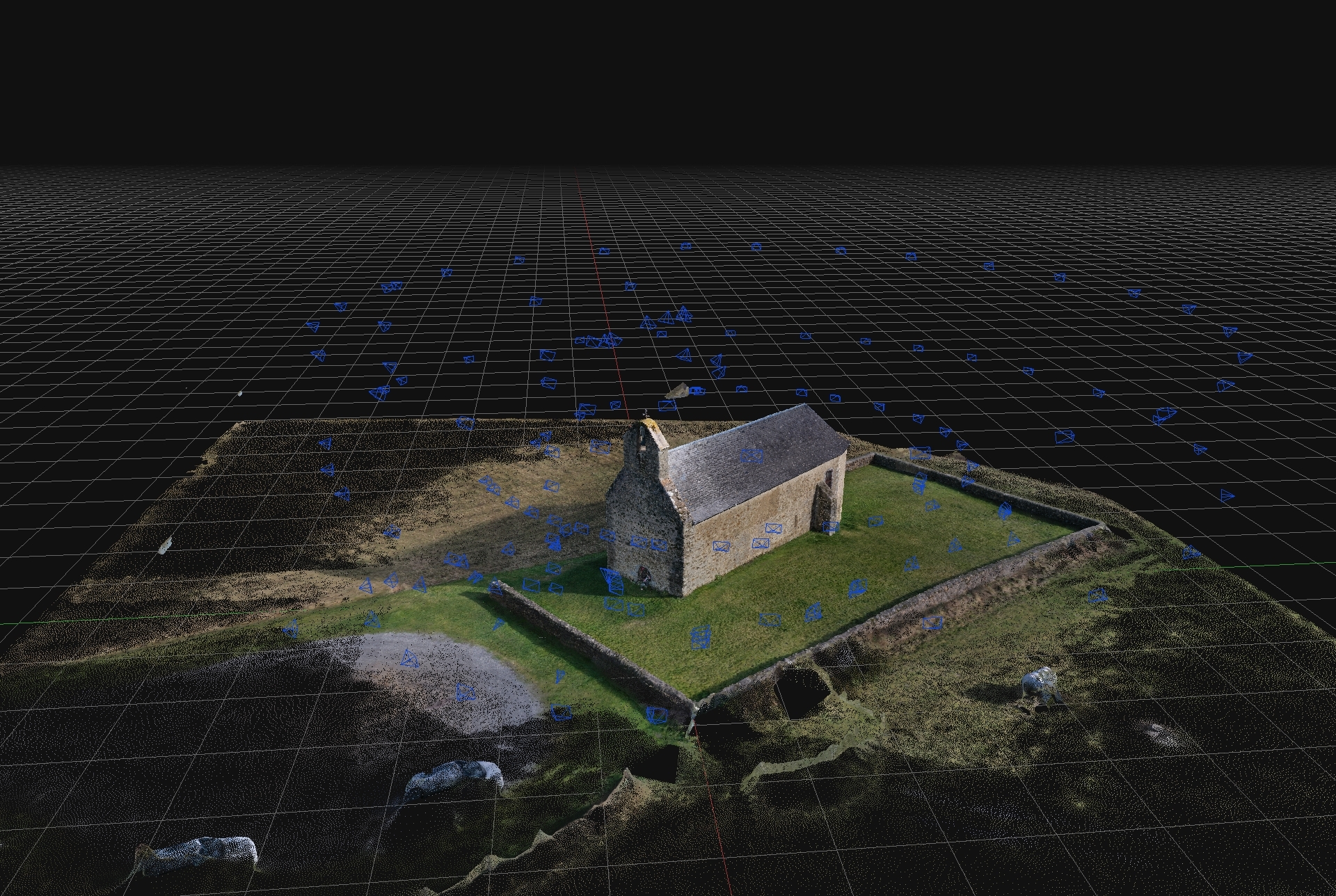 Un exemple si dessous de La chapelle de Notre-Dame de Roumé à Cieutat (65), avec environ 200 photos prisent en drone, et 100 photos au sol avec un appareil photo Lumix pour plus de details.